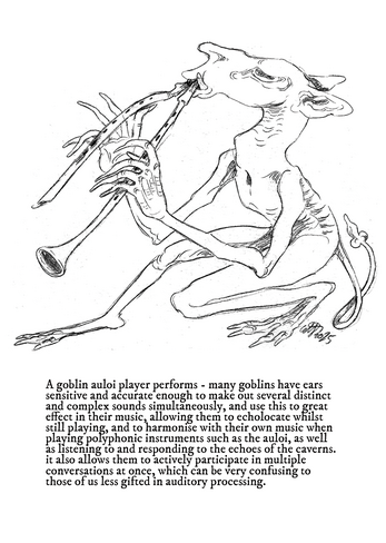What music do goblins make, and why do they make it? A collection of drawings and lore exploring the strange sounds made by goblin bands down in the deepest, darkest caves. 21 pages.